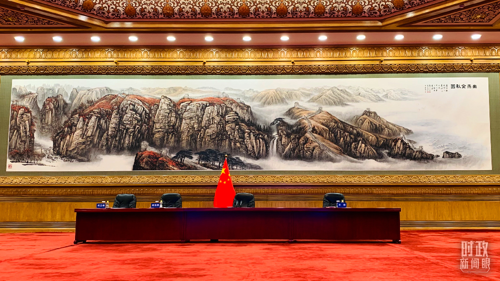 北京人民大會堂,視頻峰會開始前的會場。(圖源:央視)