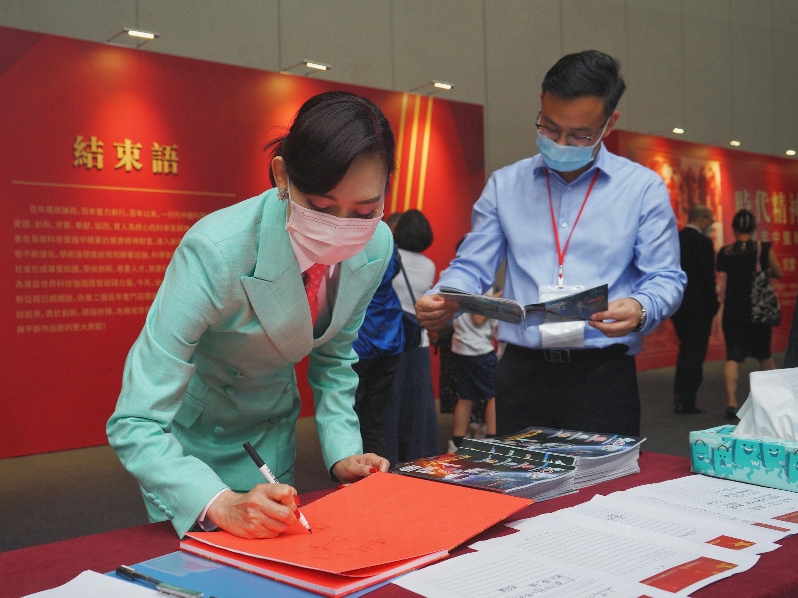 記者在現場還巧遇港區全國人大代表鄺美雲。她在展覽現場,寫下:「團結就是力量,對祖國有信心!」她表示,看完展覽後最大的感受就是要團結愛國。「我認為,團結是中國人很重要的民族特點,無論你是一個平凡人、有學問的人還是成功人士,最重要的是大家在用自己的方式,共同為國家作貢獻。」她指出,展覽有助於讓小孩子、年輕人懂得當今美好生活來之不易,學會感恩。