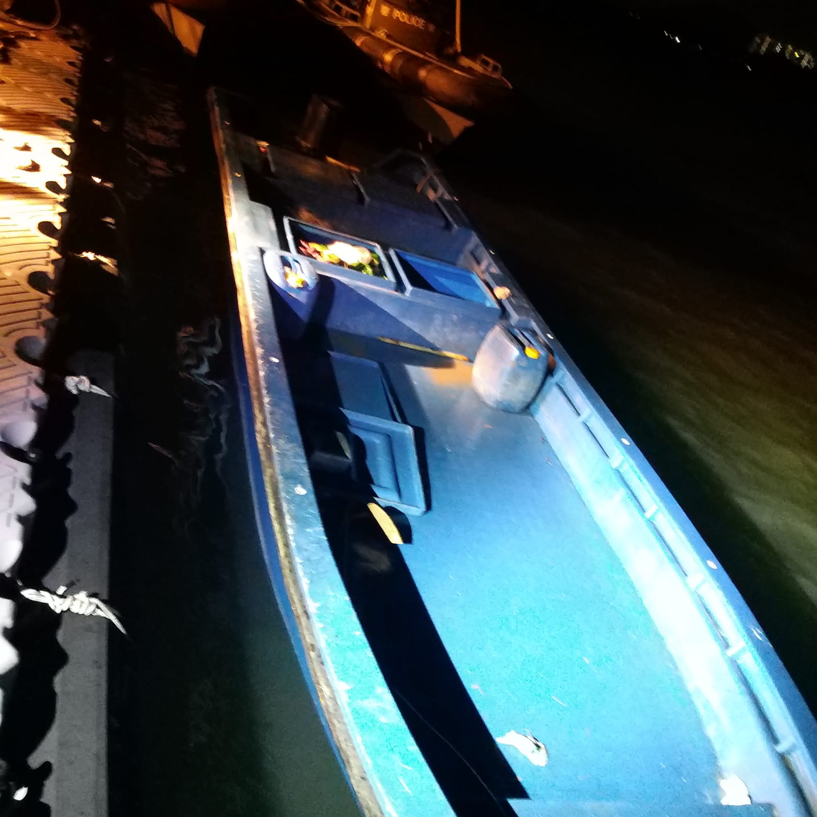 水警西分區特遣隊昨晚(7日)10時50分,聯同海關海域調查組及水警西分區後海巡邏小隊進行聯合反走私行動。期間於鰲磡沙海邊發現一名形跡可疑的男子,將一批貨物搬上一艘舢舨。其後另一艘快艇懷疑由內地駛至,將舢舨上的貨物搬往該快艇上。