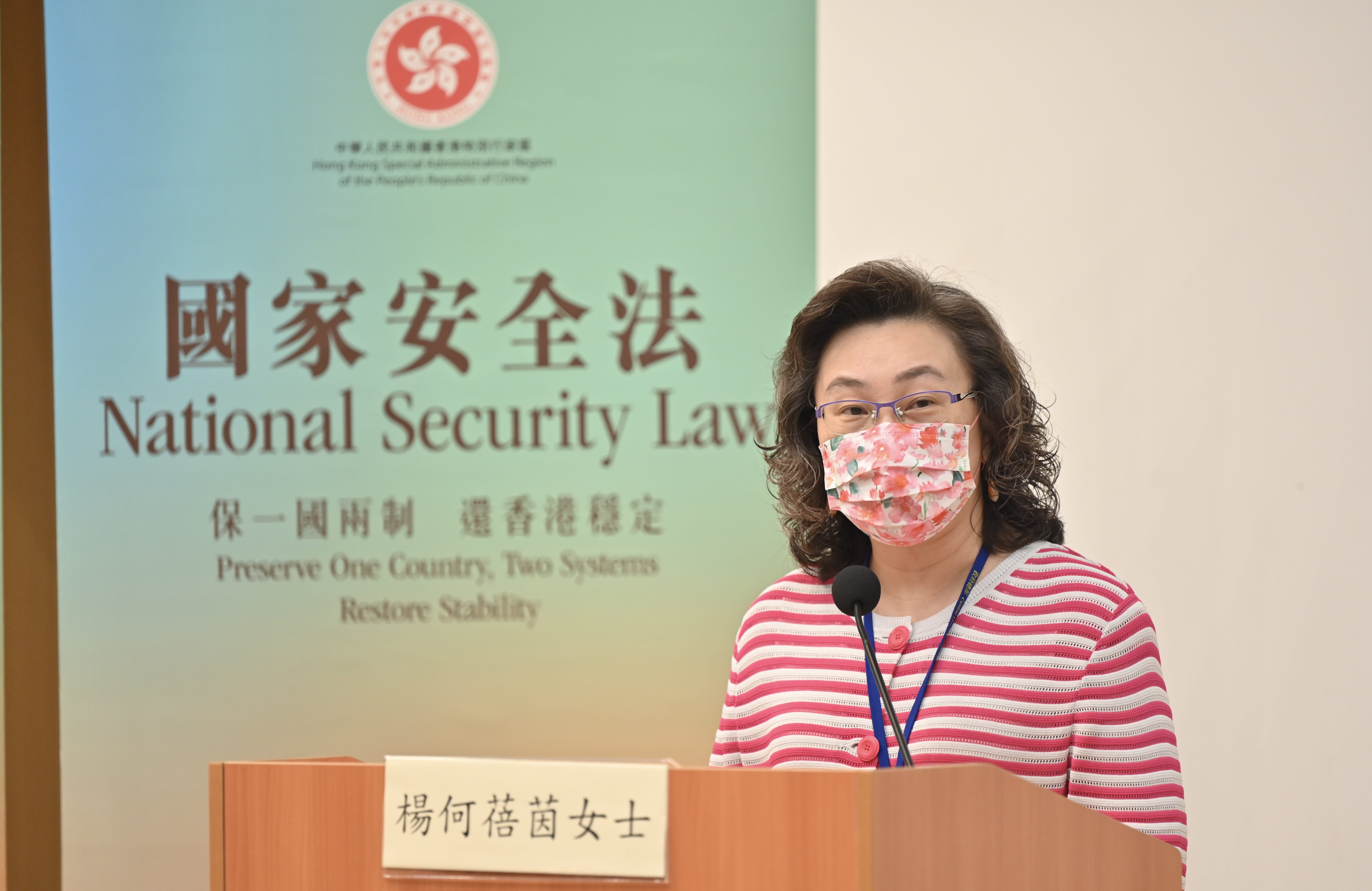 公務員事務局常任秘書長楊何蓓茵致辭時表示,去年6月底,全國人大常委會制定香港國安法,並在香港頒布實施;全國人大常委會今年3月通過經修訂的《基本法》附件一和附件二,完善特區的選舉制度,落實「愛國者治港」,有關本地立法最近亦已完成。在此背景下,公務員隊伍作為特區政府的骨幹,正確理解由國家憲法和基本法確立的憲制秩序,尤其重要。