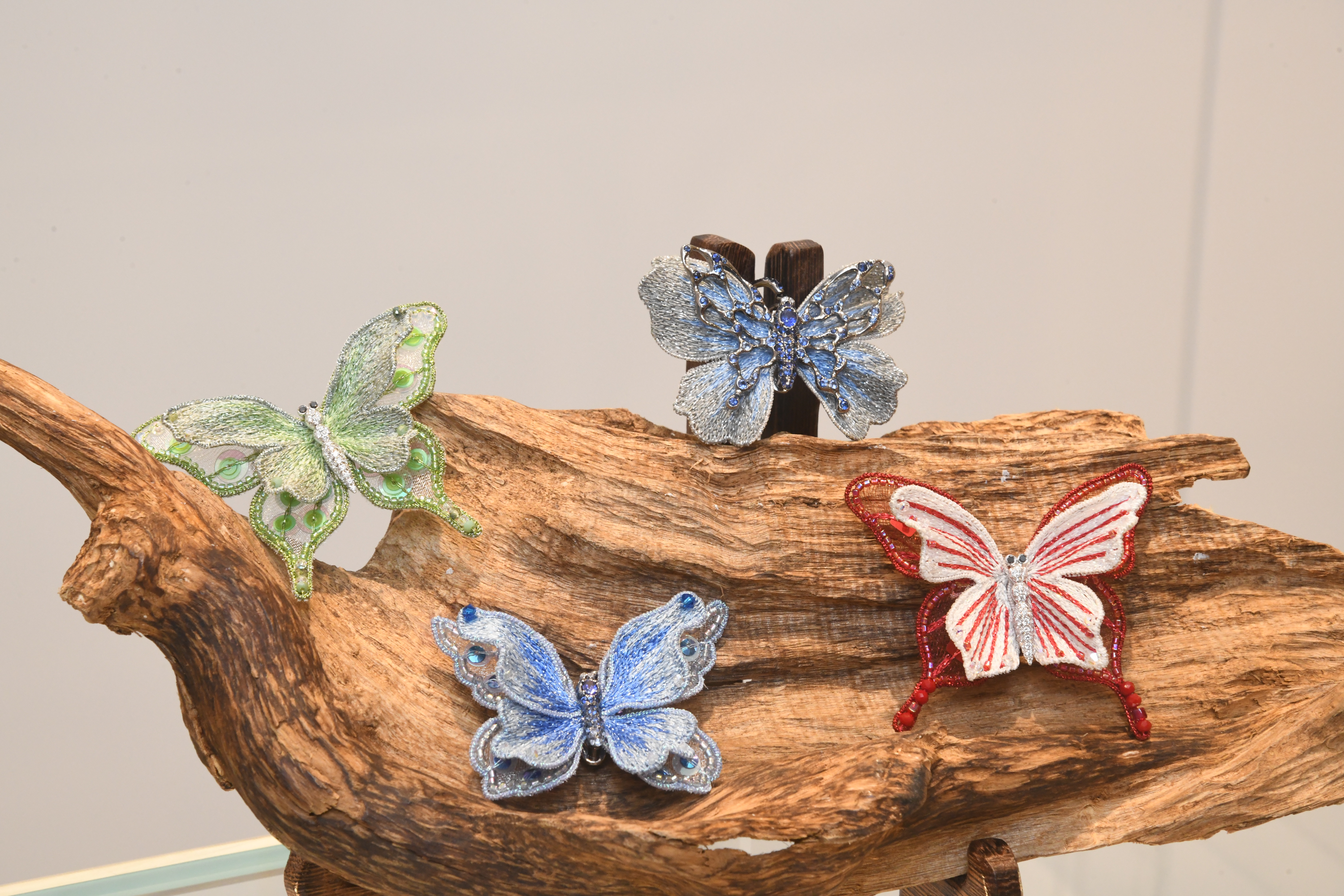 同樣,在業餘時間學習油畫的王淑筠,對文化藝術也有着非常濃厚的興趣。家族生意涵蓋珠寶業的她,亦有參與設計珠寶款式和管理工作,對藝術和美感的敏銳度幫助她更好地捕捉產品特色,把珠寶和刺繡結合。其中以夢為主題的18K金珠寶蝴蝶胸針系列,便是品牌的特色產品,深受顧客喜愛。