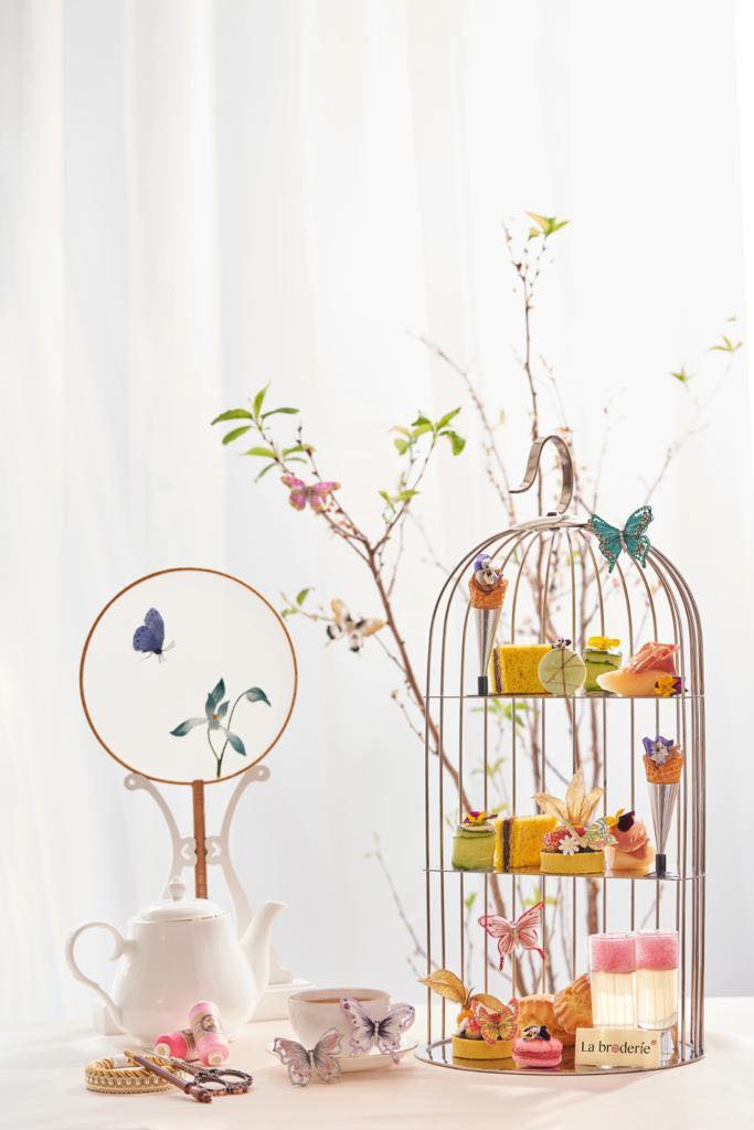 當下,La broderie與位於中環的意大利餐廳Gradini合作推出「La broderie × Gradini夢幻莊園下午茶」,將中西共融發揮到極致。王小姐和羅小姐介紹道:「繡飾度人從創立伊始,便嘗試跟不同藝術家和不同界別的單位合作,發揚傳承與創新精神。目前與Gradini推出的下午茶套餐,將中式刺繡和英式下午茶、美食和工藝品相結合,紛飛的蝴蝶與鮮花點綴的下午茶鳥籠交相呼應,與精美的鹹甜茶點一起帶來視覺和味覺的享受。」
