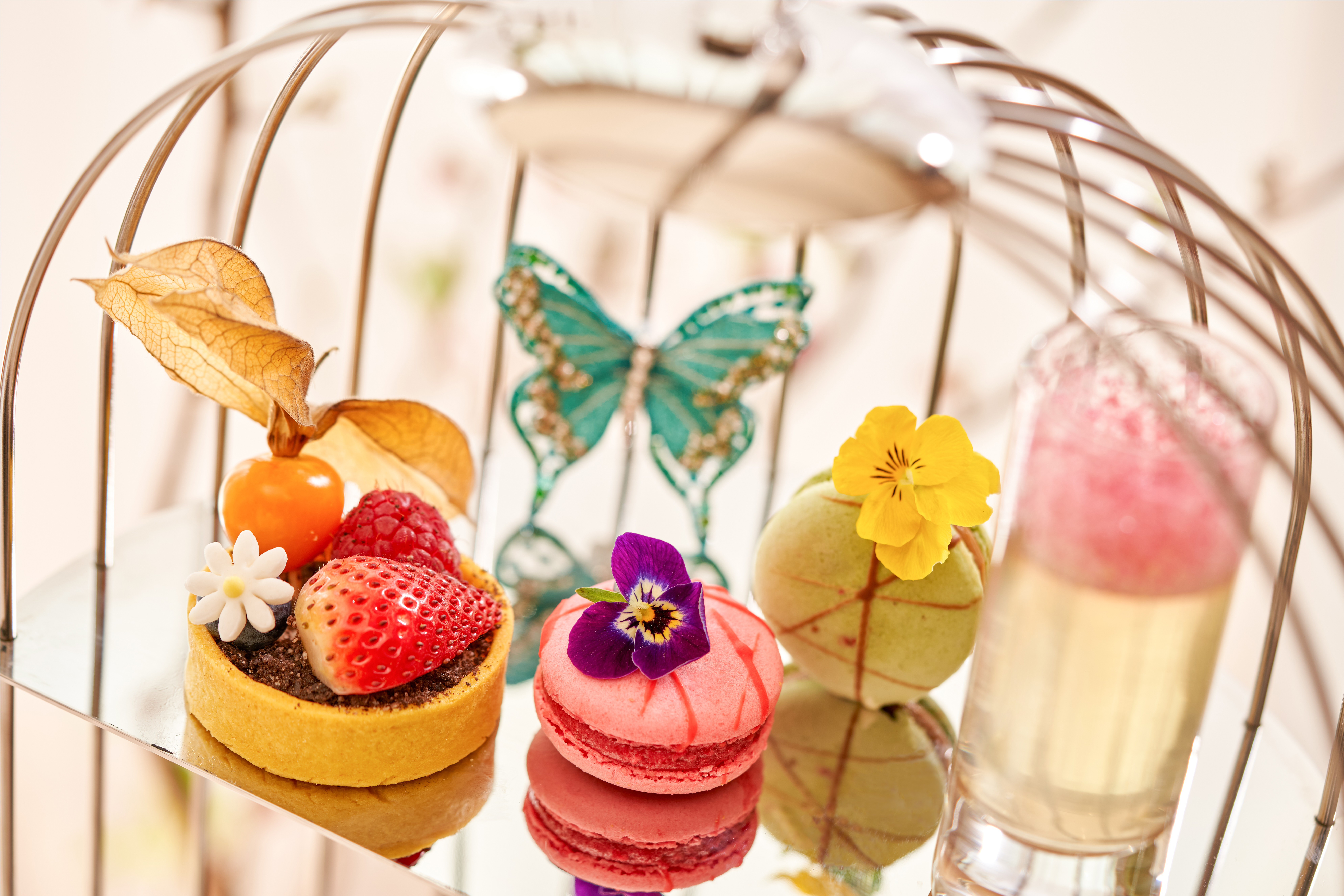 下午茶備有四款鹹點及四款甜點,鹹點包括味道層次豐富的意式風乾火腿配松露蜂蜜、造型可愛的迷你鵝肝慕絲脆筒、黃瓜刁草忌廉芝士卷及鴨肉醬三文治等。凡享用下午茶的食客均送La broderie禮券一張,選購The dream手工珠寶蝴蝶胸針,亦可獲贈價值$1150的純羊毛圍巾一條。