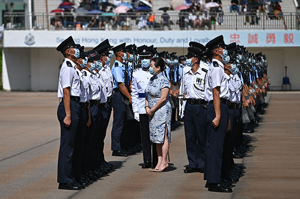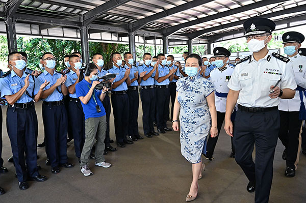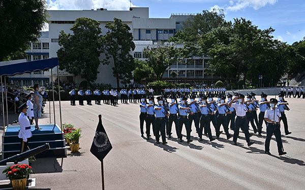 律政司司長鄭若驊今日(10日)在香港警察學院舉行的結業會操檢閱33名見習督察及116名學警。