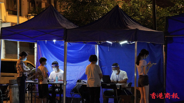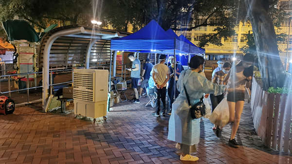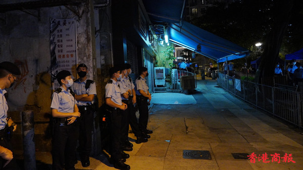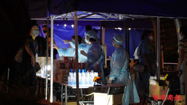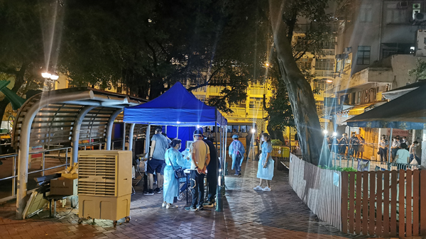 黃大仙金鳳街1-3號圍封受限區域檢測情況。記者 馮俊文攝