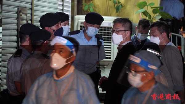警務處處長蕭澤頤到黃大仙金鳳街1-3號現場視察情況。記者 馮俊文攝