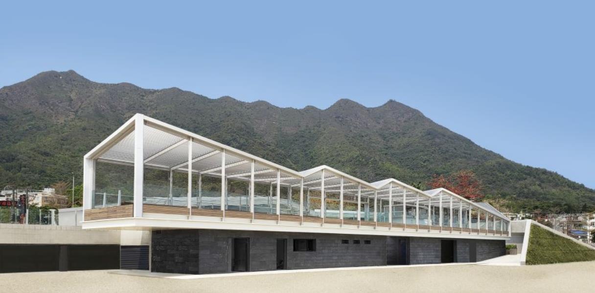 建築署高級建築師曾偉倫介紹,大埔龍尾泳灘服務大樓提供多項設施,包括觀景台、小食亭和淋浴設施等,讓泳客可以在泳灘放心暢泳;建築署工程師趙寧則提到龍尾泳灘觀景台擁有高低起伏的頂部,可與背後八仙嶺山脊線互相呼應,再加上以鋁管交織成波浪形態,遠看就像波光粼粼的海浪。