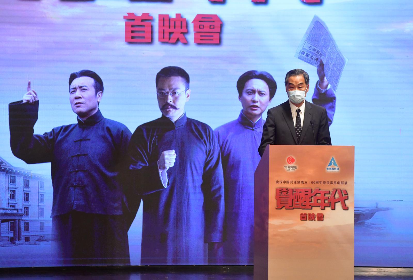 梁振英致辭表示,電視劇展播《覺醒年代》講述了由新文化運動、五四運動,到中國共產黨成立期間,社會覺醒的過程。梁振英提到,他的父母正是於這段覺醒年代在山東出生,他在年幼時聽到父母講述社會覺醒前封建、落後、貧窮的故事,及人民在覺醒過程中的掙紮。相信本電視劇可讓香港社會,尤其年青人對民族復興過程有更深的了解和認識。(記者馮煒強)