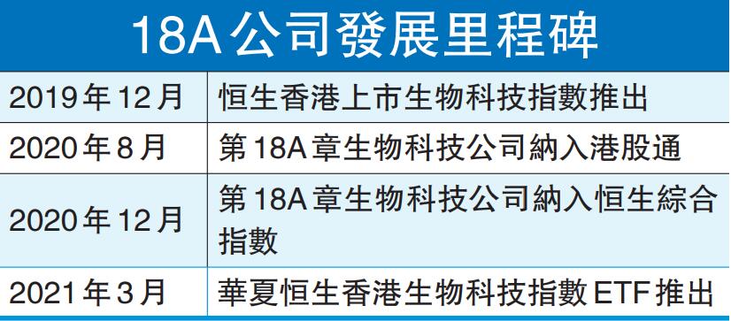 2019年12月,恒生指數公司推出恒生香港上市生物科技指數(HSHKBIO),反映包括18A公司在內的香港上市生物科技公司整體表現(54隻成分股當中包含21家18A公司)。自推出以來,HSHKBIO回報率達55%,相當於40%的年化回報率,進一步驗證了香港生物科技生態圈的不斷成熟。