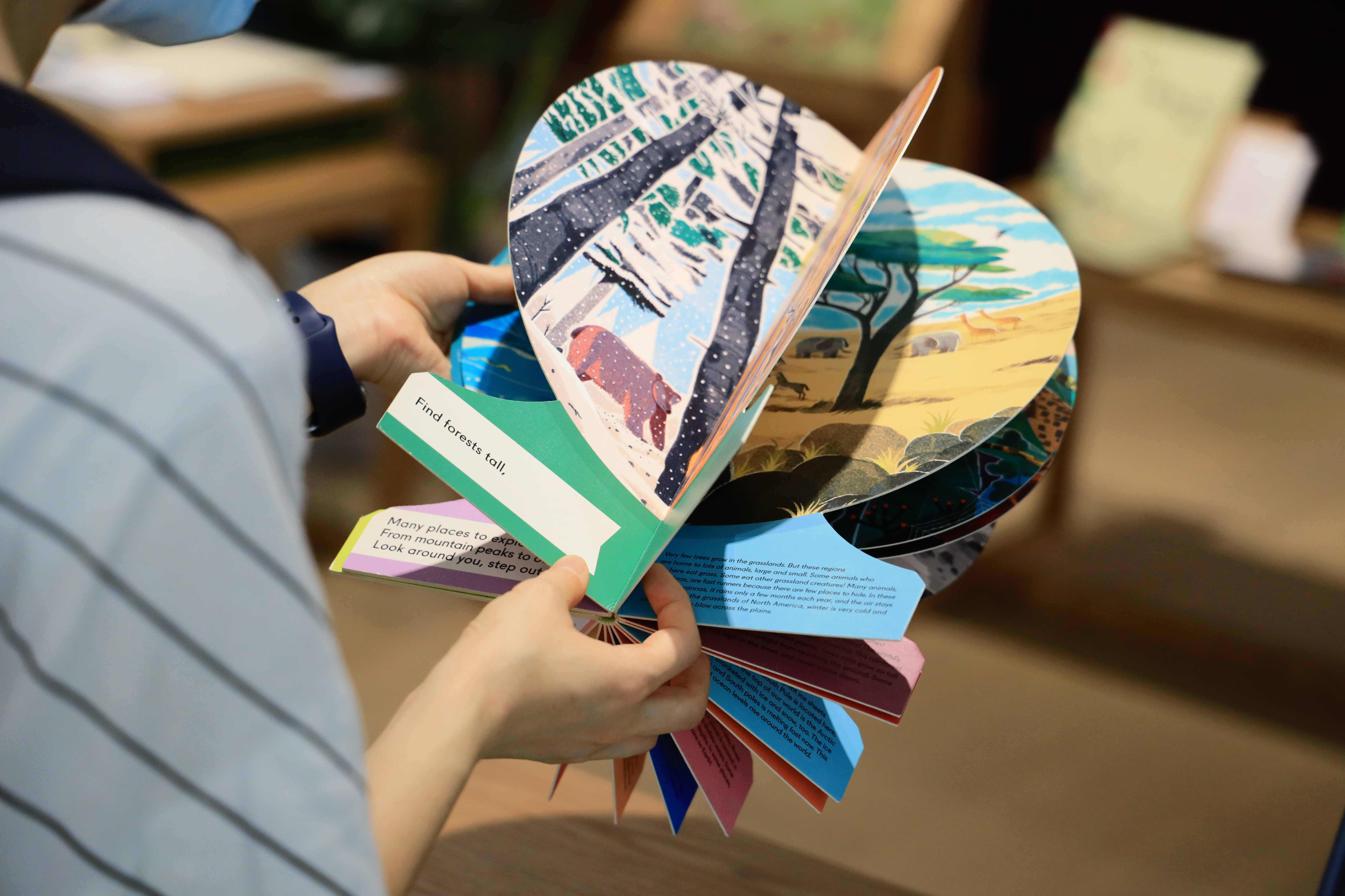 書單中,有以平行時空敘事的《山是我的家:牧羊人與狼的雙向思考故事》和《Forêt des frères》,有無字書《鯨魚日》和用上虛構昆蟲語言的《Du Iz Tak?》,有利用剪紙技術或立體紙藝說故事的精美創作《Garden Jungle》、《Our World: A First Book of Geography》,也有需要透過翻頁動作帶來沉浸式閱讀體驗的《鳥落地後》等,讓讀者經歷一次心靈和視覺的旅行。