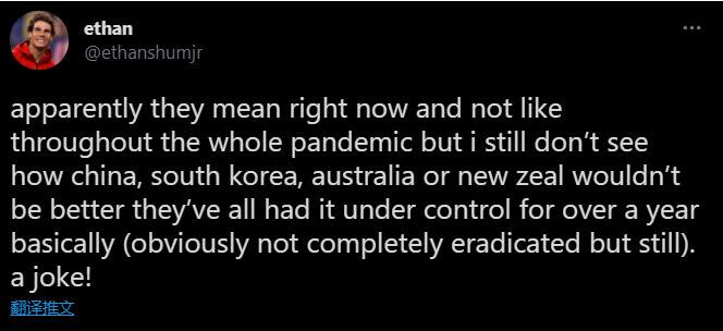 還有網友表示,雖然報告說的是現在,但還是不明白為什麼像中國、韓國、澳大利亞或者新西蘭這樣明明一年來疫情控制都不錯的國家還不如美國呢?