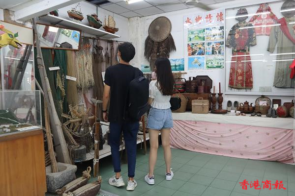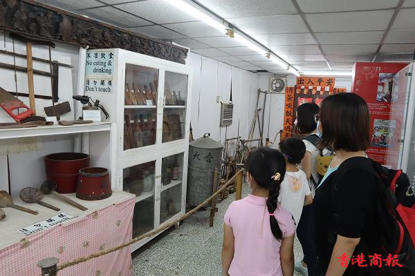 「大澳鄉事委員會歷史文化室」可說是大澳的迷你博物館,內裏的展品都是由村民贈送,整個展館面積不大,展品大都是上個世紀四五十年代甚至更早期的物品。其中有村民賴以為生的捕魚工具,包括防風設計的風燈、搭棚裝船用的平水尺和手動木鑽;另外也有他們的日常生活用品,比如上世紀50年代的結婚禮服、水上人的服飾、燒炭的燙斗、昔日涼茶店大銅壺等。透過展品、舊照片及海報等介紹,可以更深入了解大澳的歷史與文化。(記者 馮瀚文攝)