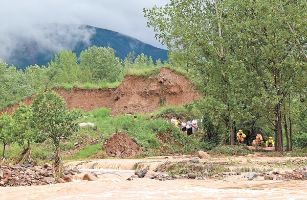 20日,受持續強降雨影響,登封市唐莊鎮龍頭村附近突發山洪。新華社