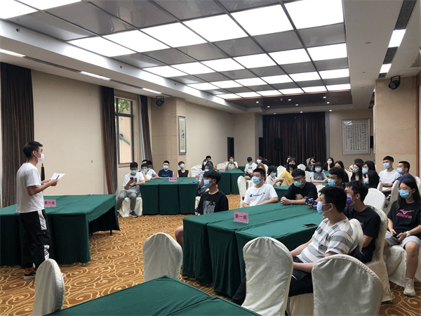 區青聯工作人員在跟部分港澳青年學生說實習期間日常管理制度、安排等內容