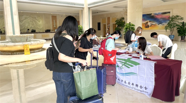 港澳青年學生到酒店報到,區青聯工作人員登記,發放實習大禮包