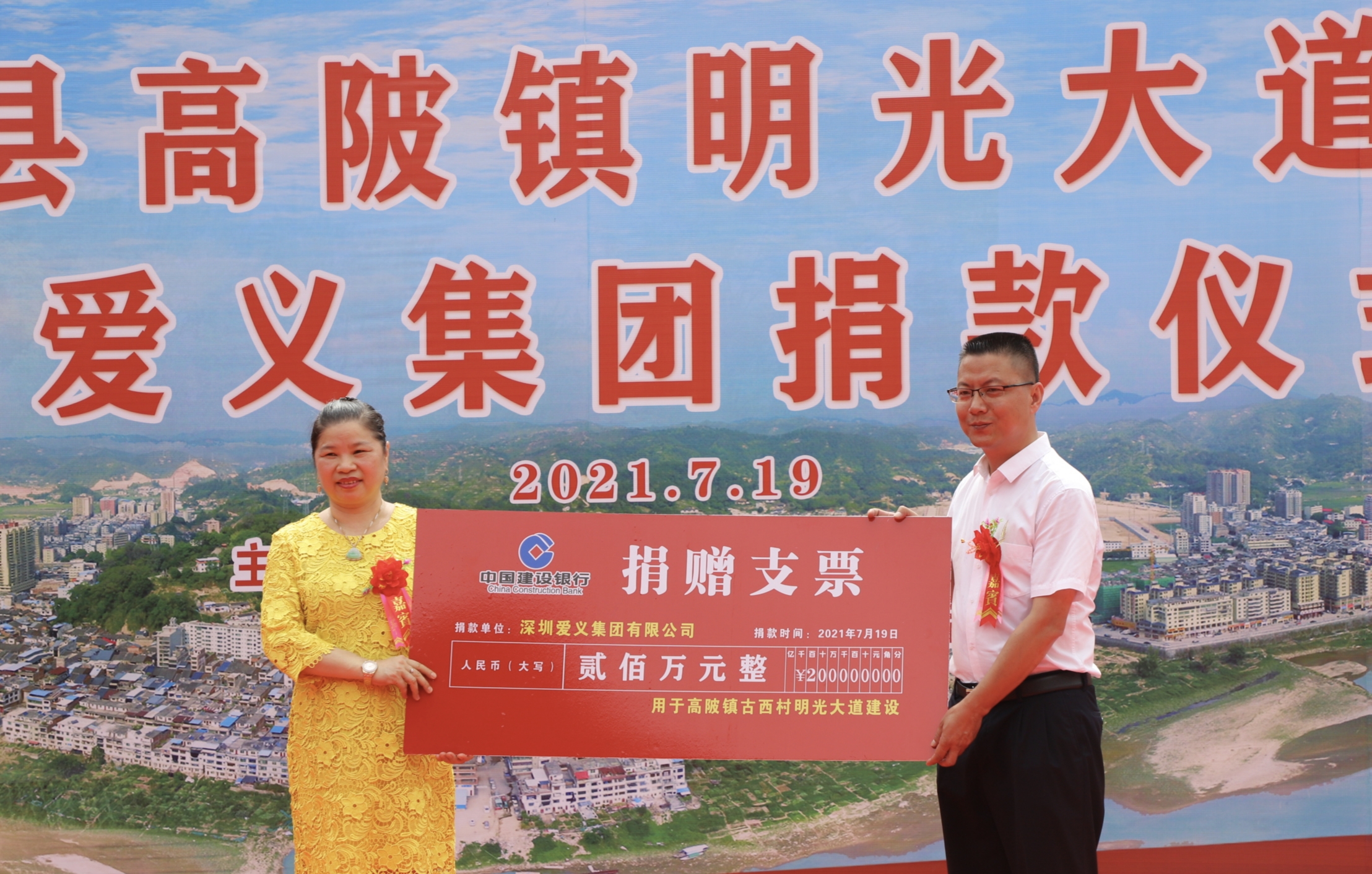 在這次活動中,7月19日,愛義集團董事長趙義良和董事楊明清伉儷為廣東大埔縣家鄉正在建設的愛國教育基地——李明光烈士紅色景區捐款200萬元,修建「明光大道」。