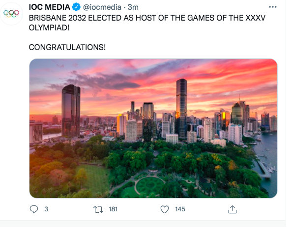 2021年2月24日,國際奧委會宣布,澳洲布里斯班成為2032年夏季奧運會「首選舉辦城市」。