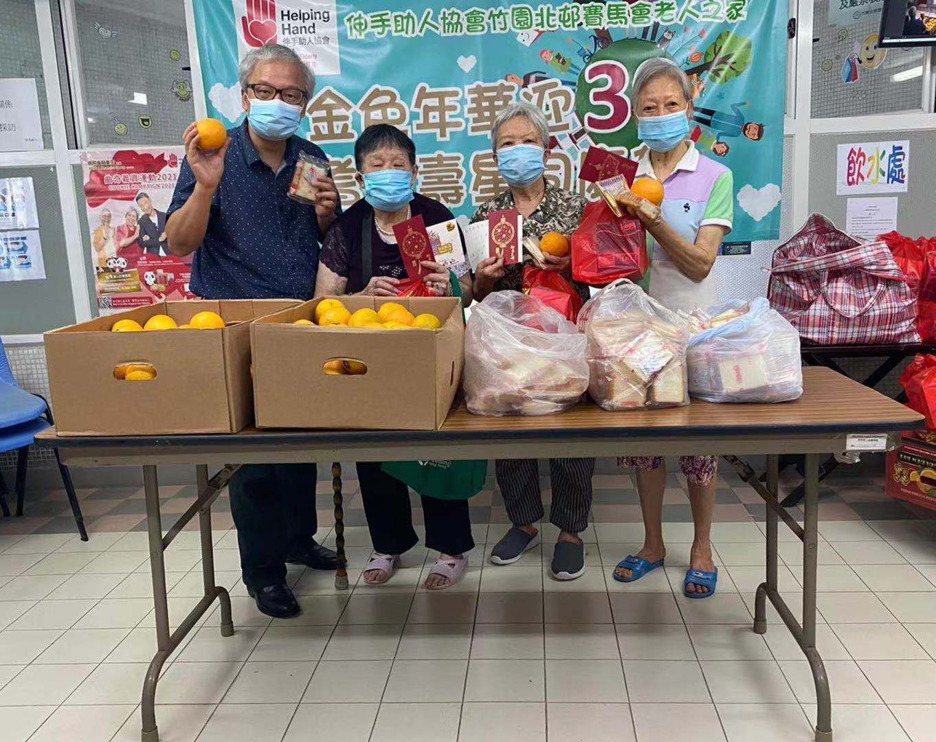 31位生日長者獲得的禮物分別有50元利是、生日卡及福袋,福袋內有梳打餅、燕麥片、盒裝紙巾及毛巾一條;其他長者亦有受惠,共收到橙子及獨立蛋白蛋糕各160個。