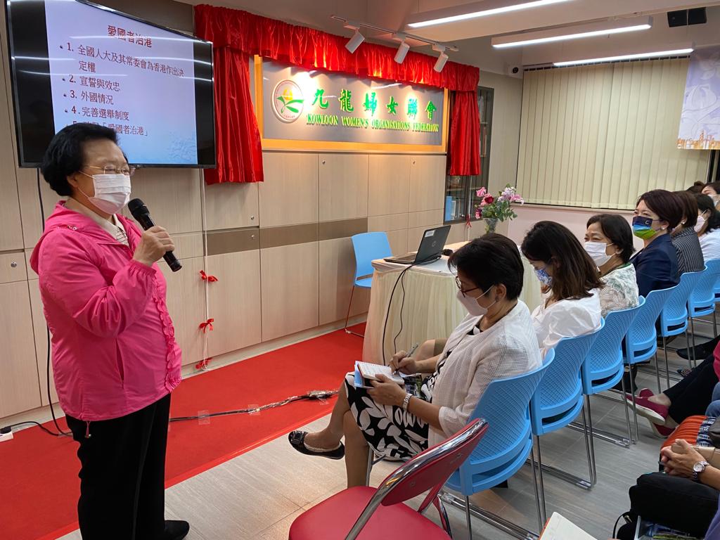 九龍婦女聯會日前舉辦「新裝揭幕禮暨『愛國愛港 完善選舉制度』講座」,以慶祝該會成立21周年。中聯辦九龍工作部副部長盧寧、油尖旺民政事務專員余健強、聯會首席會長林顥伊應邀主持揭幕禮。當晚講座則邀得基本法委員會副主任譚惠珠擔任主講,旨在深化不同界別人士對新選舉制度的認識。首席顧問鄭臻、會長陸海、主席蘇麗珍均有出席。