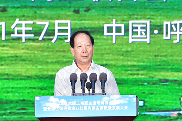 7月20日,2021全國工商聯主席高端峰會暨全國優強民營企業助推內蒙古高質量發展大會在呼和浩特召開。全國政協副主席、全國工商聯主席高雲龍作主旨講話。內蒙古自治區黨委書記、人大常委會主任石泰峰致辭。中央統戰部副部長、全國工商聯黨組書記、常務副主席徐樂江,內蒙古自治區黨委副書記、自治區主席布小林,自治區政協黨組書記、主席李秀領出席會議。