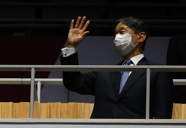國際奧委會主席巴赫及日皇德仁其後一同進場。6名日本運動員及工作人員,在前線醫護、殘障人士及兒童的帶領下,手持日本國旗進場,交由工作人員在旗桿升起;歌手米斯亞同時高唱日本國歌。