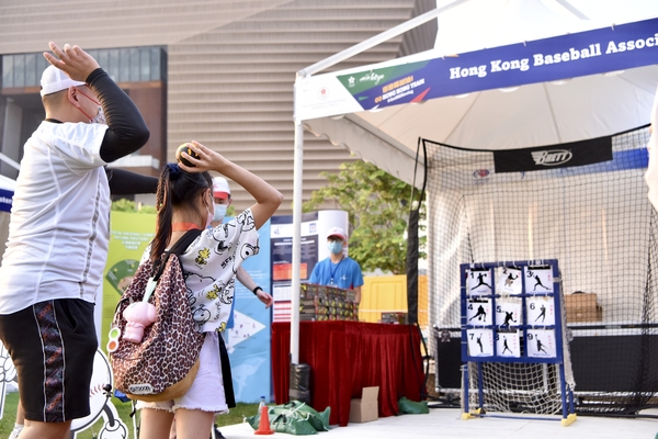 下午5點,香港最高氣溫達34攝氏度。在口罩與炎日的雙重「夾擊」下,市民熱情不減,聚集在西九文化區藝術公園的草坪上,等待「香港隊加油」活動正式啟動。