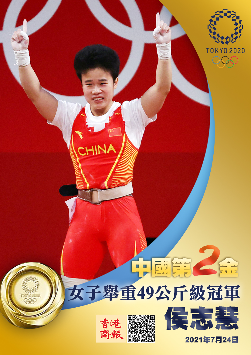 北京時間7月24日12點50分,東京奧運會女子舉重49公斤級A組在東京國際論壇大樓進行。中國選手侯志慧以毫無爭議的優勢,以抓舉94公斤、挺舉116公斤,總成績210公斤打破兩項奧運會紀錄,奪得女子舉重49公斤級的奧運會金牌。侯志慧為中國舉重隊取得開門紅,同時這也是中國代表團在本屆賽事獲得的第二枚金牌。
