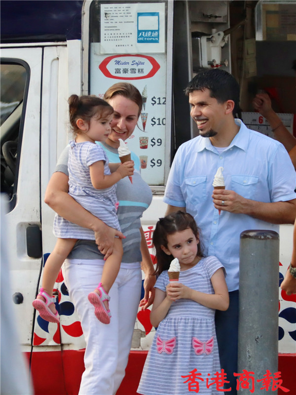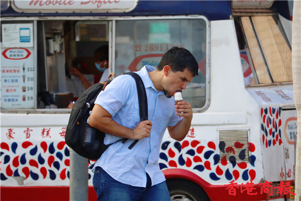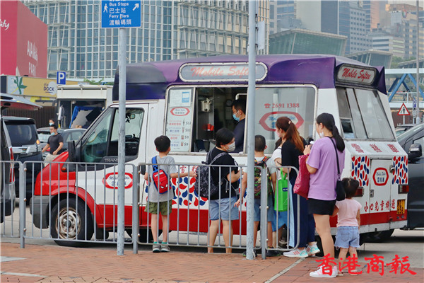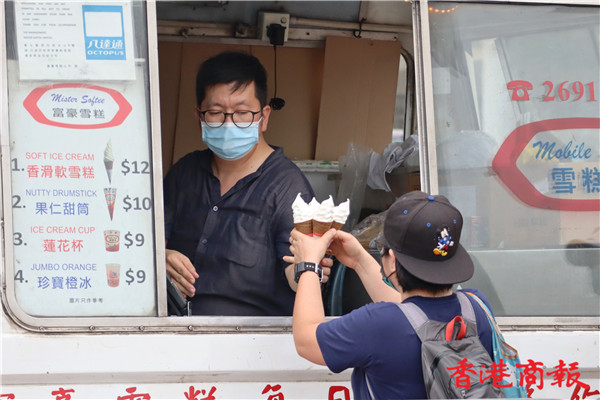 時代變遷,雪糕車外貌一點沒改,它就像一位老者,哼着柔和的音樂售賣雪糕,為小孩、大人帶來口感滿足、歡欣的心情,是香港人的集體回憶,也吸引不少遊客光顧。偶然經過尖沙咀碼頭或中環海濱活動空間,沿着悅耳的音樂找到雪糕車,雖然現在售價已升至十二元一杯,但也會買來吃,用舌頭細舔軟滑的雪糕,既可在炎炎夏日降降溫,也可補償小時候的渴望。(馮瀚文攝)