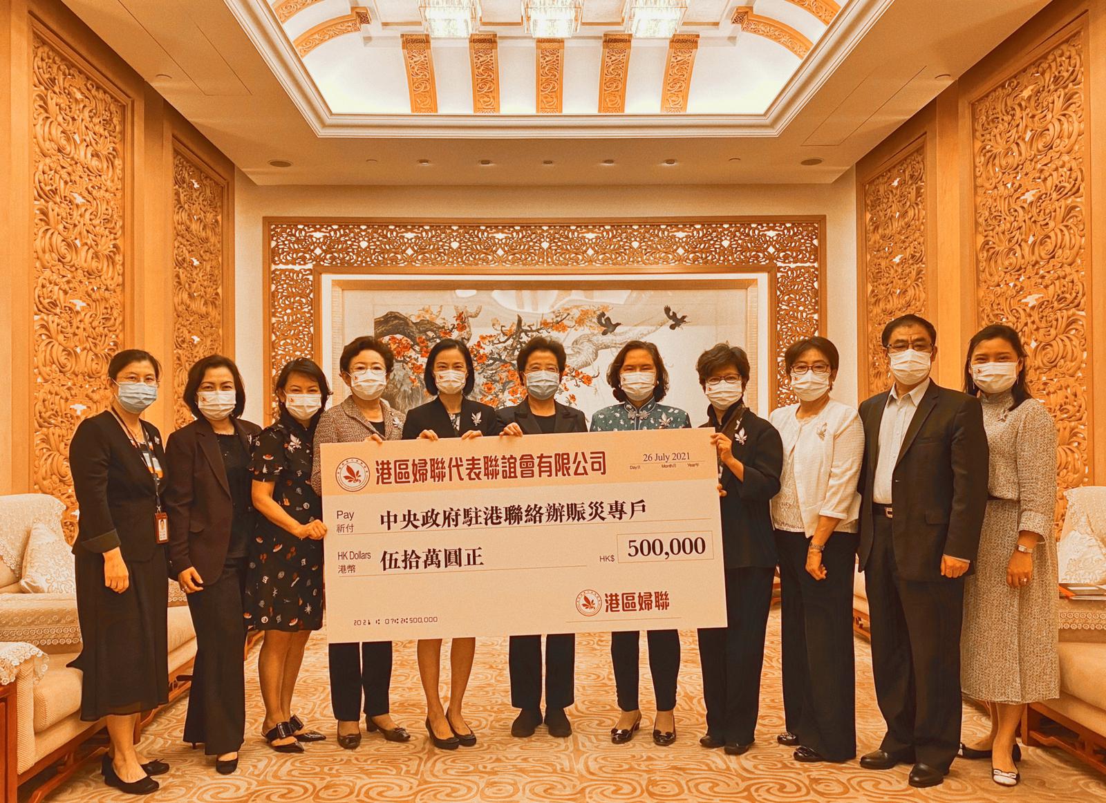 港區婦聯代表聯誼會向通過中聯辦向河南災區捐贈50萬港幣。