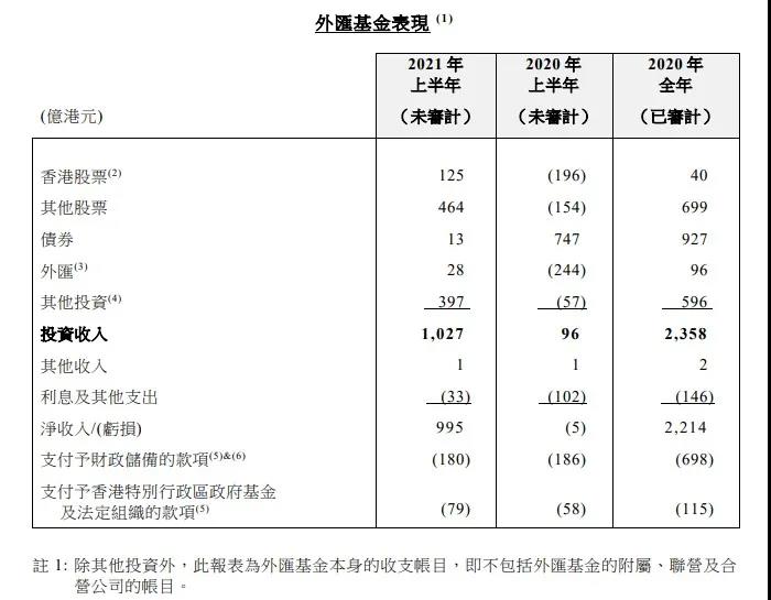 香港外匯基金最新公布今年上半年表現,投資收入達1027億元,比2020年上半年只有96億元,大增了969%,看似十分亮麗,其實主要因為低基數效應,相對2020年上半年投資收入特別差而已。