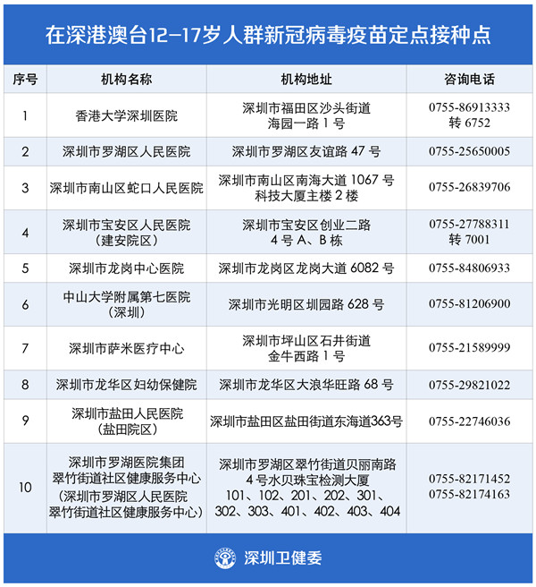 哪些人可以接種?在深圳的12-17歲無禁忌症人群(含港澳台籍、跨境學生)。