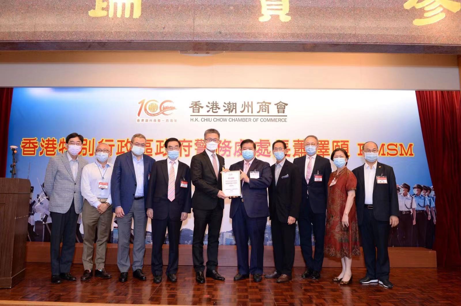 會長黃書銳在致辭時感謝香港警隊長期以來肩負除暴安良,維護法治,保障公共安全及公共秩序的重任。在過去反修例風波中始終站穩立場,盡忠職守,維護國家安全,保護香港安寧。他相信香港警隊在蕭澤頤的帶領下必能再接再厲,為維護國家安全和香港法治及穩定發揮更大的作用。他強調,潮商堅持愛國愛港愛鄉立場,堅定支持香港特區政府依法施政,支持香港國安法實施。該會不少會董更在各區撲滅罪行委員會、少年警訊及耆樂警訊擔任要職,商會將一如既往支持香港警隊嚴正執法,維護法紀,保護香港,為香港的繁榮穩定作出貢獻。