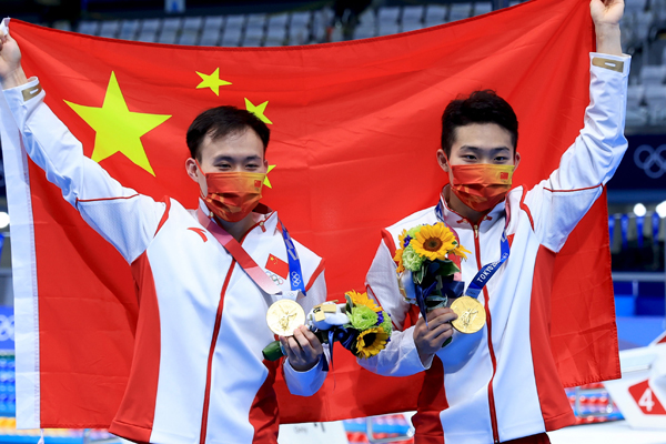從2016年等到2021年,他南徵北戰,其間既要打磨技術,還得保護自己免受傷病。功夫不負苦心人。男子雙人3米跳板,中國跳水隊在里約賽場唯一憾失的金牌,由他和隊友王宗源在東京賽場給「拿回來了」。