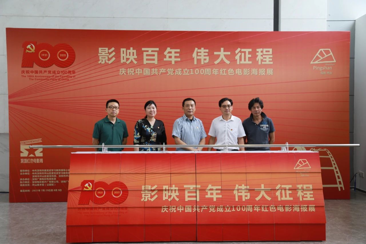 7月29日上午,「影映百年 偉大征程」慶祝中國共產黨成立100周年紅色電影海報展在深圳市坪山美術館(公園館)開幕,展覽通過100張電影海報,見證中國共產黨團結帶領全國各族人民取得歷史性成就的光輝歷程。中國電影集團副總經理兼藝術委員會主任江平,深圳市委黨史學習教育第二巡迴指導組副組長曾麗芬,坪山區委常委、宣傳部部長鄧艷東,市委宣傳部出版和電影處處長譙進華等參加開幕活動。