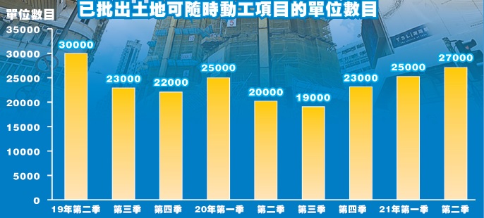 利嘉閣地產研究部主管陳海潮表示,主要受惠疫情持續好轉,次季私樓施工量錄得4300伙,按季大增近一倍,同時受已批出隨時可動工的「熟地」按季增加2000伙所帶動。他相信,隨着疫情持續受控及整體經濟改善,下半年私樓動工有望保持加快。他續說,今年私樓動工數字不斷追落後,但未來供應能否持續,需視乎港府能否盡快釋出更多「熟地」以興建私人住宅。依目前情況觀察,要短期內釋出大量土地仍然十分困難,故相信樓價仍將繼續穩中向好。