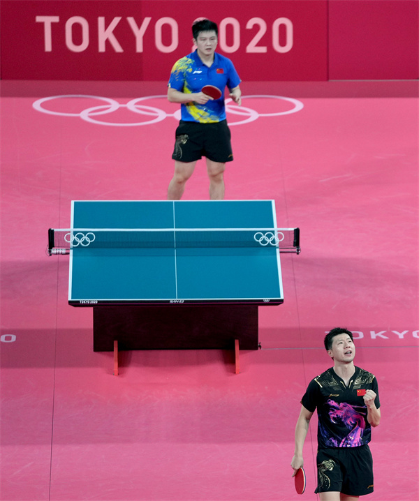 國乒隊長馬龍和樊振東在比賽中。新華社