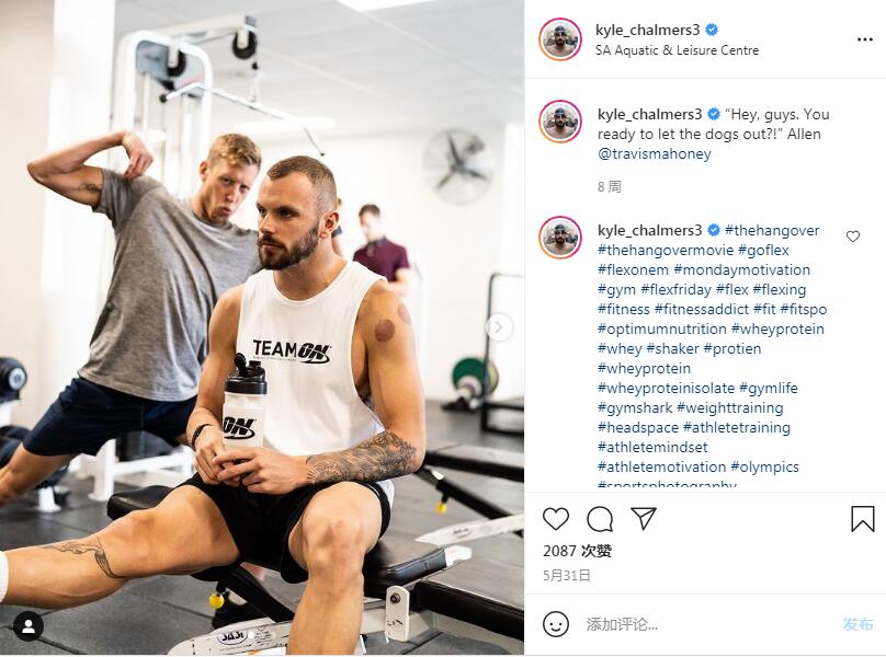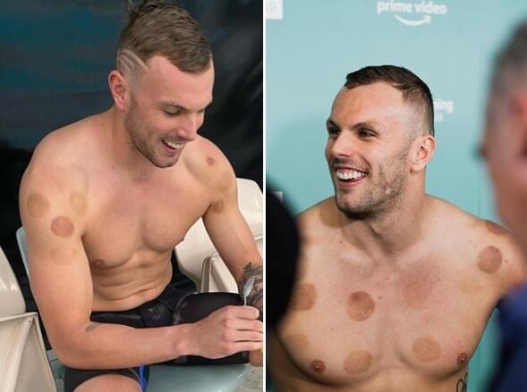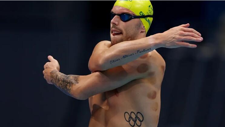 此次東京奧運會,澳大利亞游泳冠軍Kyle Chalmers的後背和肩膀上都有拔罐的痕跡。Chalmers去年肩部進行了手術,後來靠拔罐來緩解身體的疼痛。
