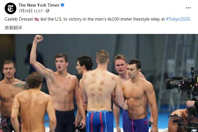 7月26日,東京奧運會游泳比賽進入第二個決賽日,當日壓軸戰是男子4×100米自由泳接力,在泳姿被稱作「教科書」的德雷塞爾帶領下,美國隊以3分08秒97無懸念奪冠。