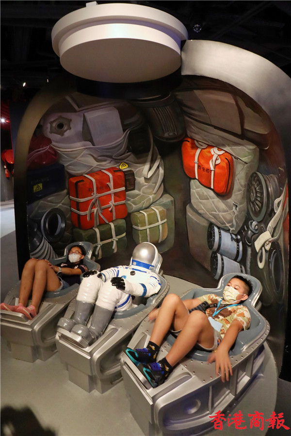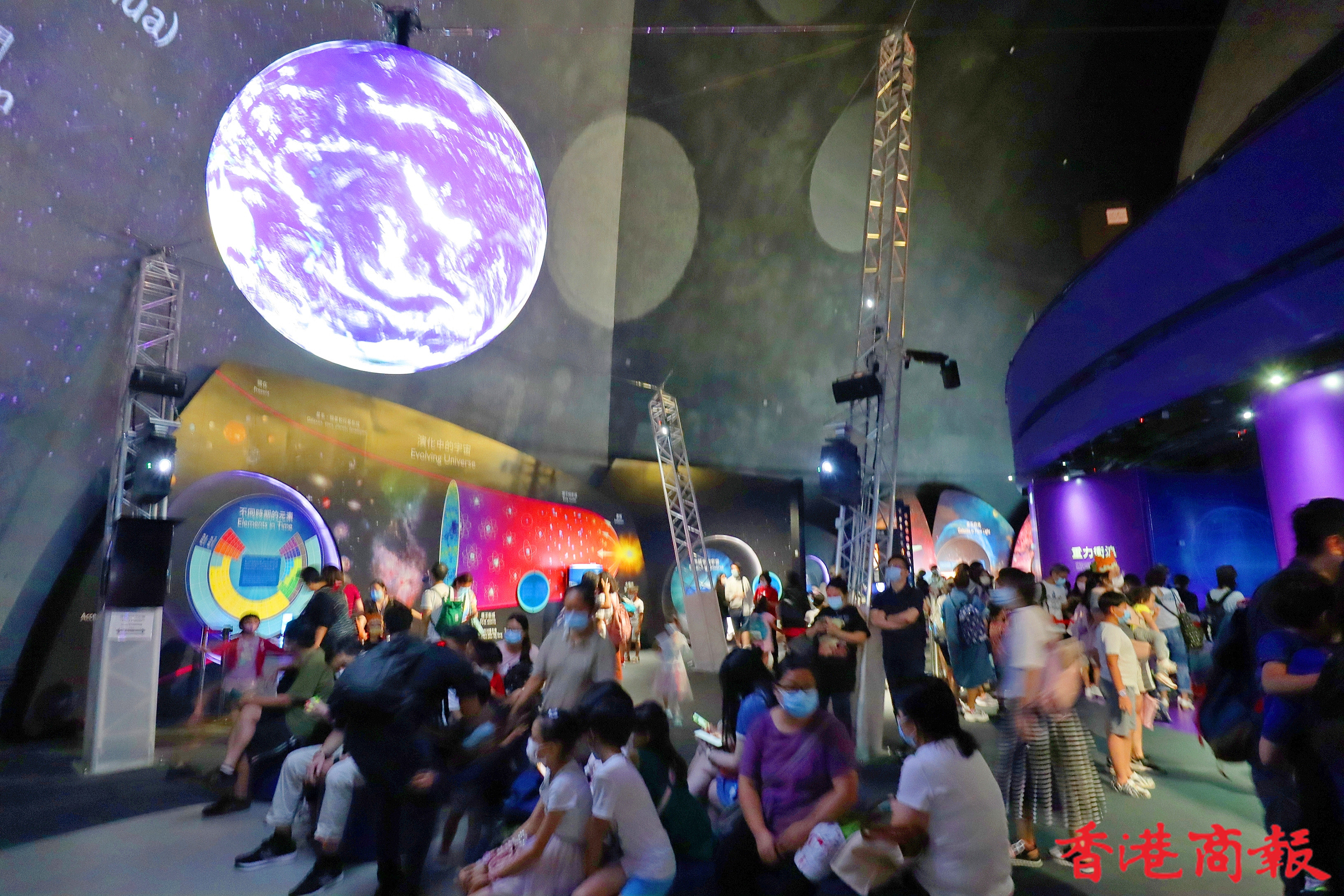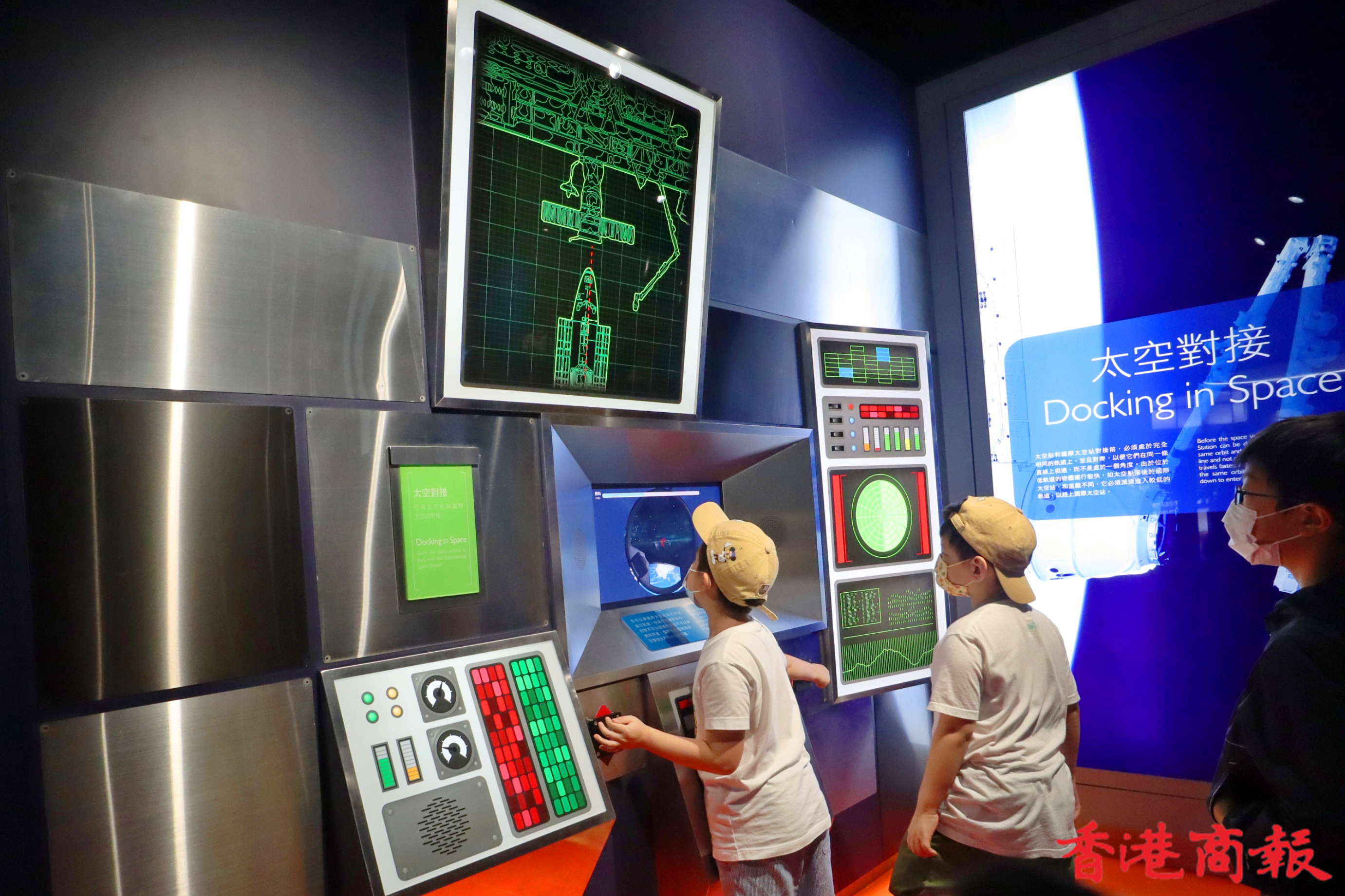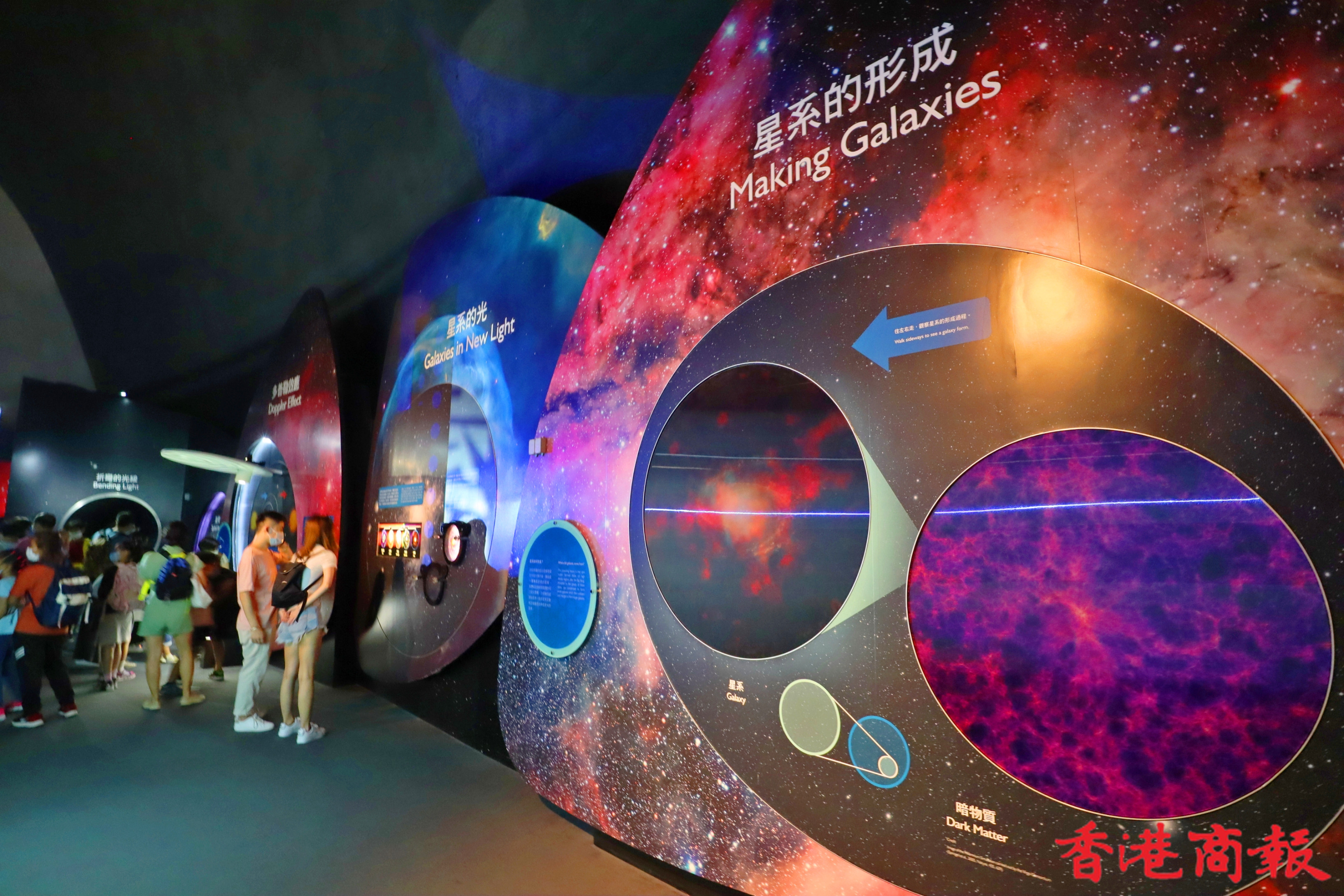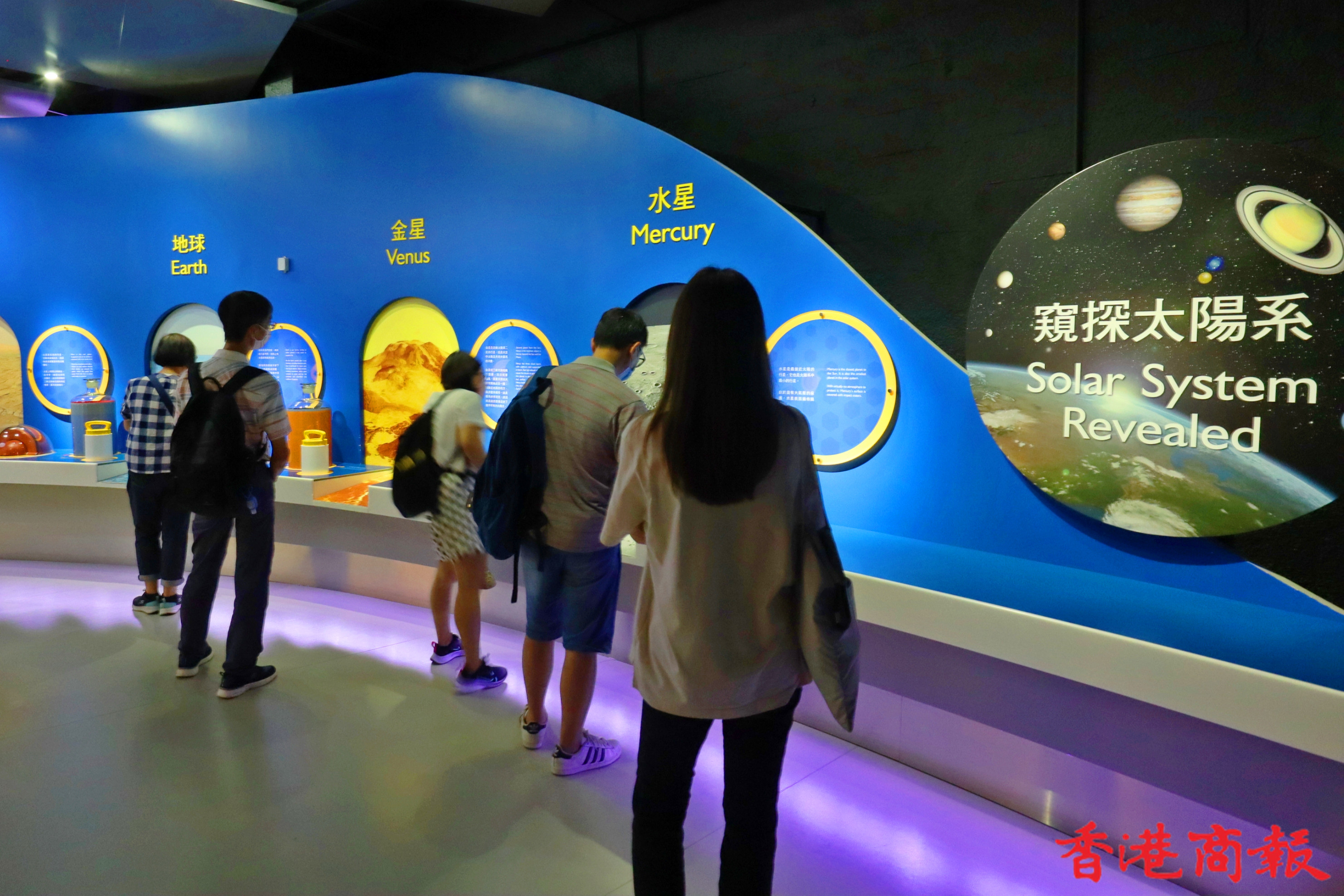 展覽透過有趣的互動展品,配合燈光效果和環境布置,讓市民了解更多天文及太空科技新知。(馮瀚文攝)