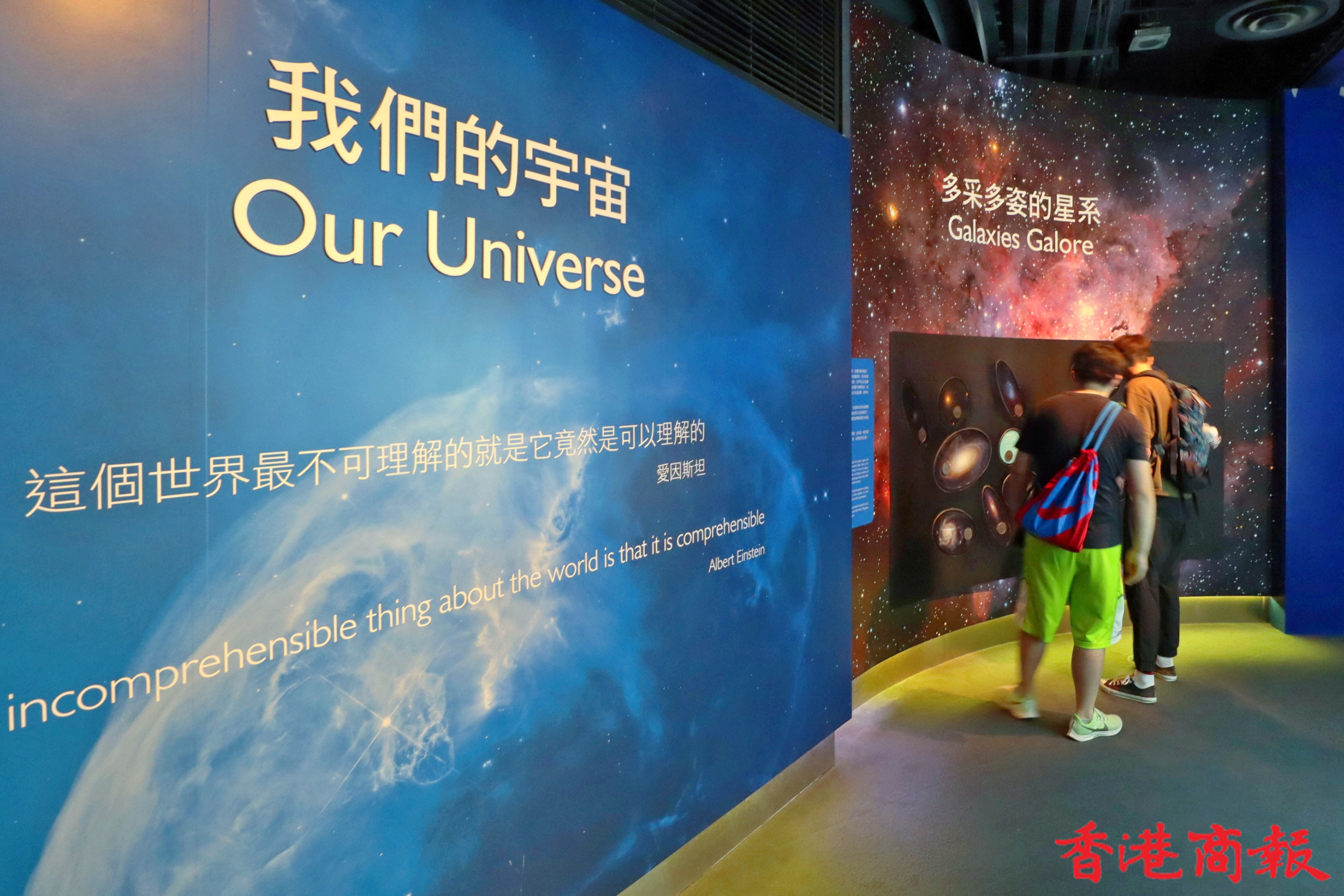 「宇宙展覽廳」展示探索宇宙由近至遠的概念,從我們身處的太陽系開始,推展至遙遠的恆星及星系,探索宇宙的演化。當中的「極光」展品讓觀眾調校真空管內太陽風的強度,在地球模型上產生極光。「冰封天體」利用乾冰製成彗星,模擬彗星的噴流及運動。「宇宙演化劇場」展示宇宙從大爆炸至現在的演化。「重力沖浪」讓觀眾站在滑浪板上,在太空各天體間穿梭,了解重力對空間的扭曲。