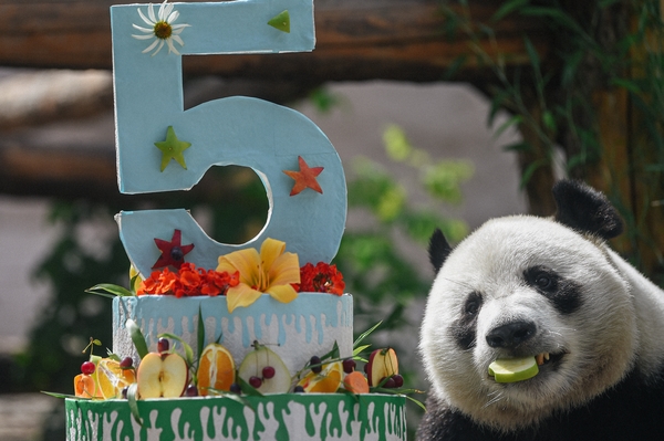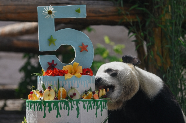莫斯科動物園指出,生日禮物是兩個「蛋糕箱子」,裏面裝滿了水果、蔬菜和竹子。