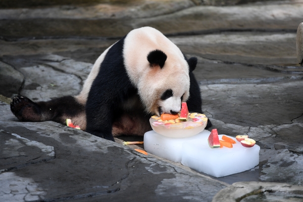 園方還為如意準備了一個大游泳池,裏面不僅有好吃的,還有美味的冰塊。此外,他們還為丁丁準備了巨大的「雨傘雞尾酒杯」。