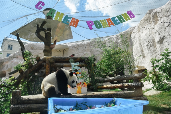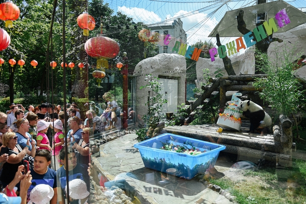 據俄羅斯衛星網報道,莫斯科動物園新聞處周六發布消息稱,當天,莫斯科動物園為旅俄大熊貓「丁丁」和「如意」舉辦了慶生儀式,園方還向它們送上了生日禮物。