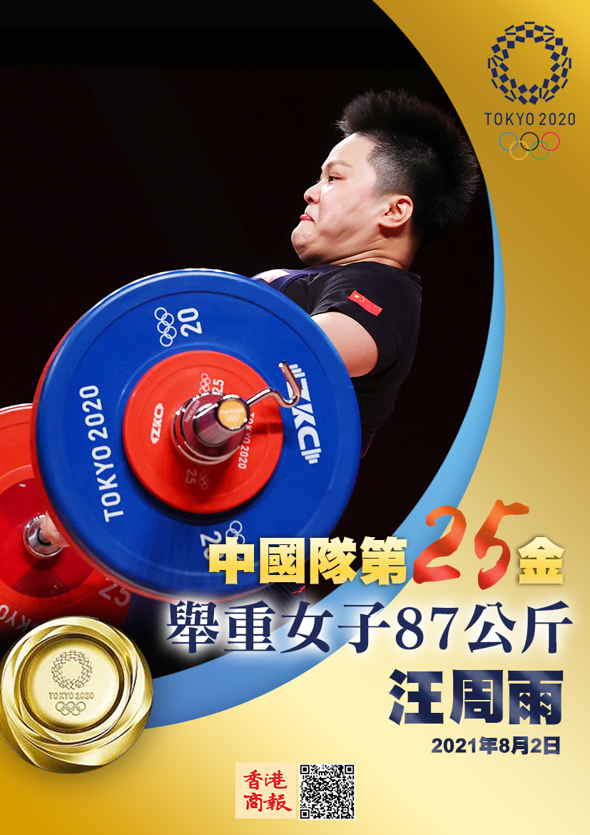 8月2日,在東京奧運會舉重女子87公斤級決賽中,中國選手汪周雨以抓舉120kg、挺舉150kg、總成績270kg,奪得冠軍,為中國舉重隊拿下了本屆奧運會的第6枚金牌,為中國代表團拿下第25枚金牌!(圖源:路透社、新華社)