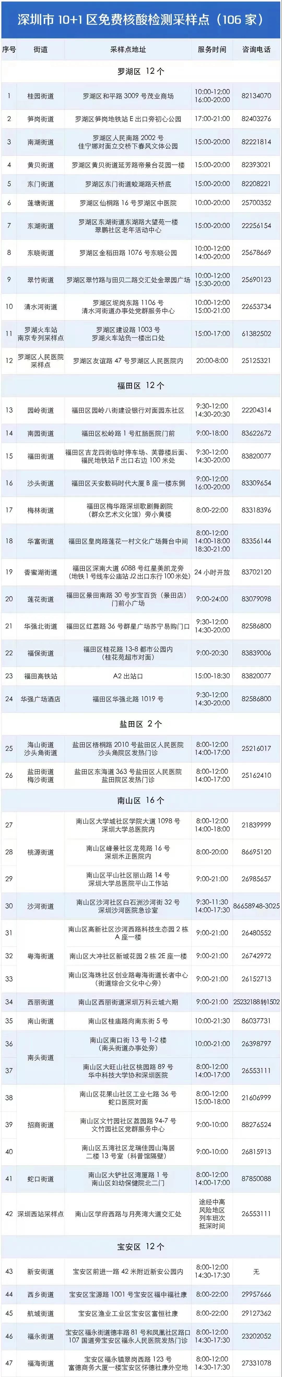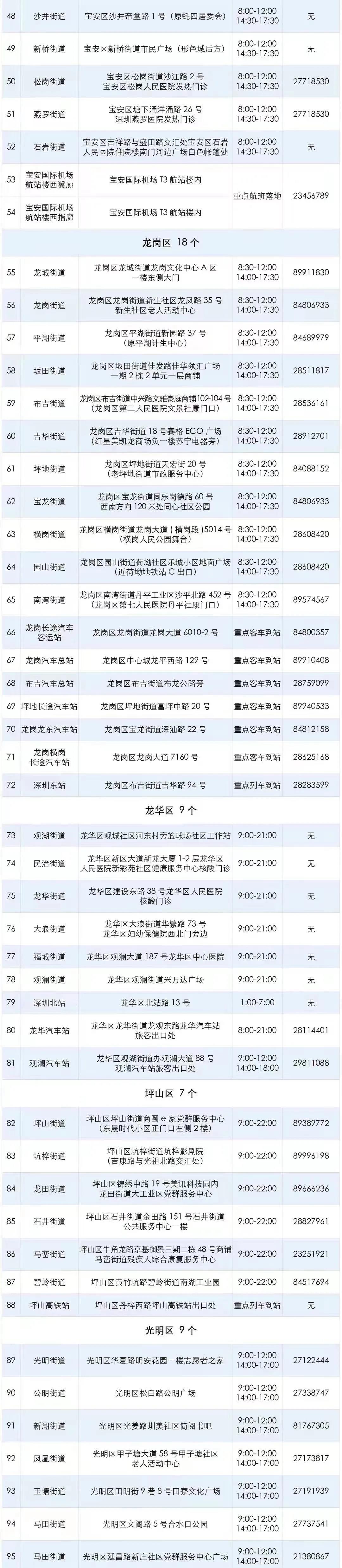 只要你是7月20日以來,從國內中高風險地區所在城市來深返深人員,都可以到下圖中任意一個點免費測核酸。