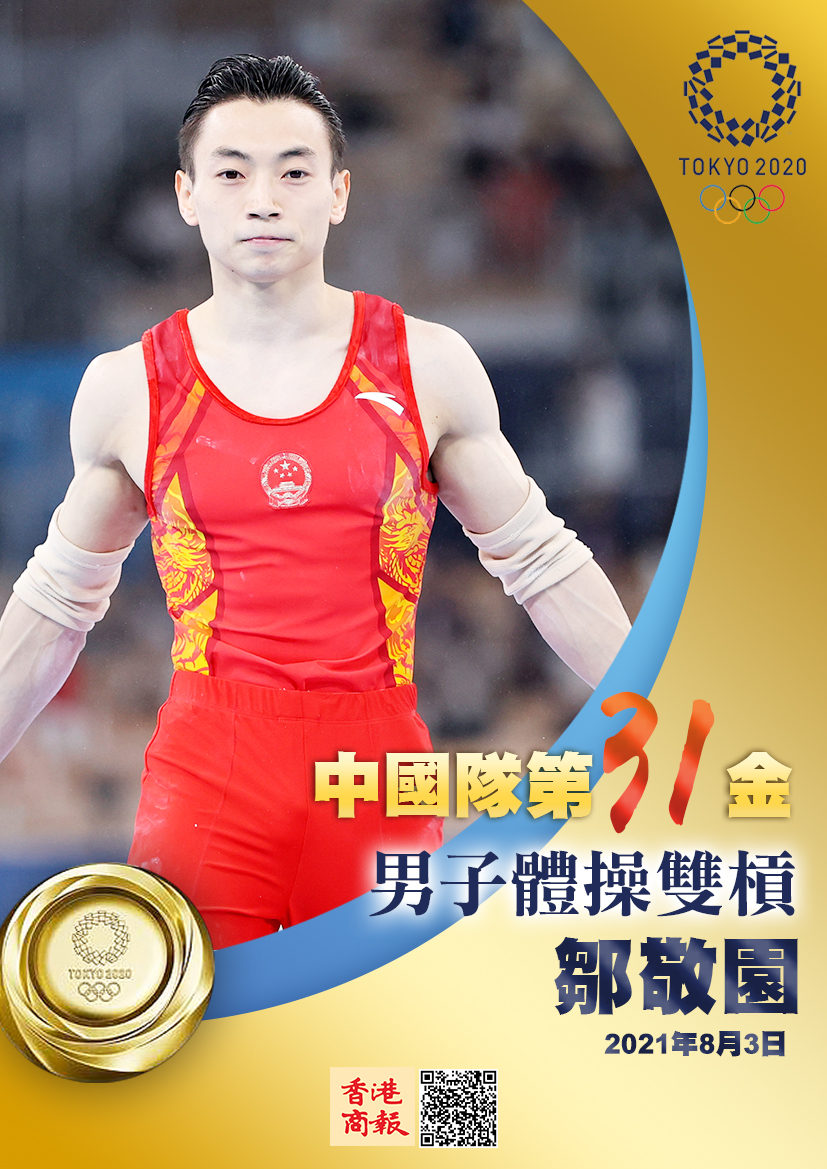 北京時間3日,在東京奧運會男子體操雙槓決賽中,中國選手鄒敬園以16.233分奪得冠軍,这是鄒敬園首次參加奧運會。