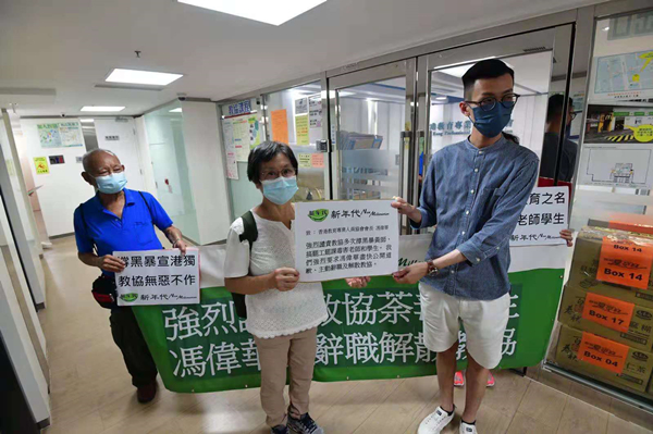 團體批評教協會長馮偉華早前曾反對國民教育,又編寫通識教材污衊國家,扭曲國情教育,為違法「佔中」、修例風波埋下禍根。團體更批評該組織安排反對派政棍到各中小學進行所謂演講,鼓吹各種歪理;並支持罷課,成為失德教師的保護傘。