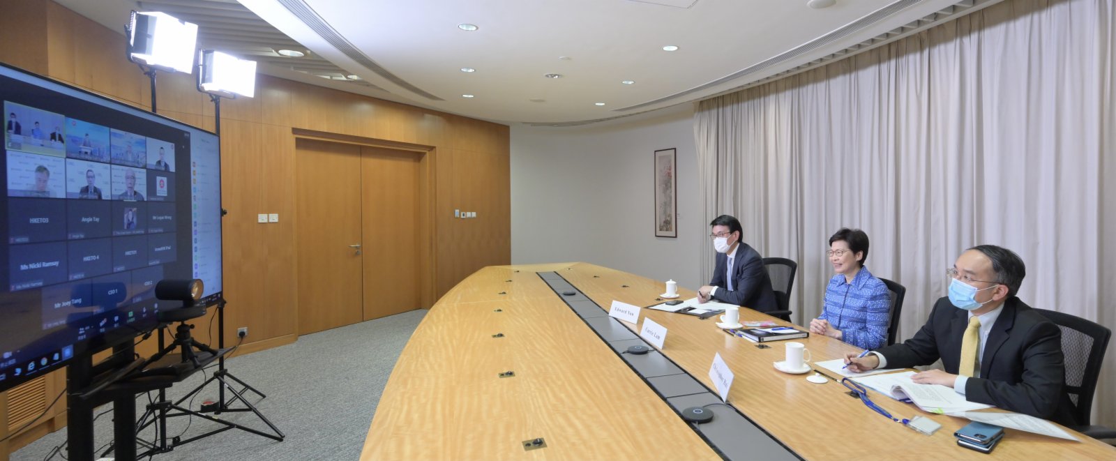 行政長官林鄭月娥今日(4日)出席網上研討會,向超過500位新加坡商界人士介紹香港的最新發展。林鄭表示,香港在「一國兩制」下擁有無可比擬的優勢,是新加坡企業通往粵港澳大灣區和中國內地發掘商機的理想門戶。