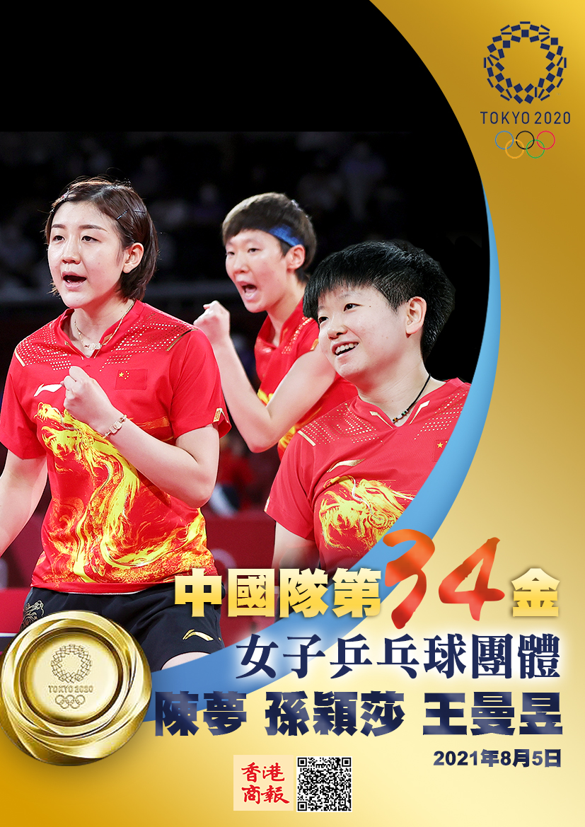 在剛剛結束的東京奧運會女子團體乒乓球決賽中,中國由陳夢、孫穎莎、王曼昱組成的隊伍以3:0的比分戰勝了由伊藤美誠、石川佳純、平野美宇組成的日本女隊,連續第四次獲得奧運會女團金牌。
