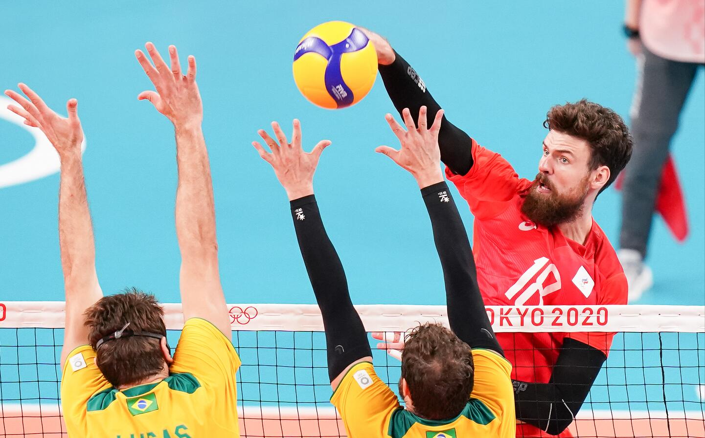 俄羅斯晉級男排決賽,圖為俄羅斯運動員在比賽中扣球。新華社